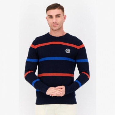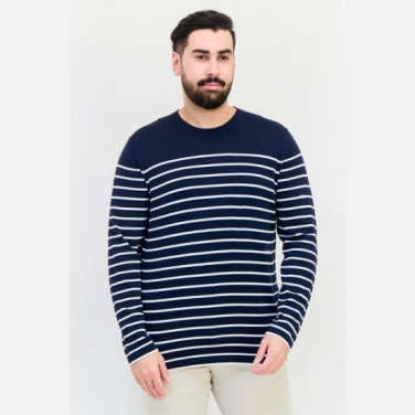 Celio Men Crew Neck Long Sleeve Stripe Sweater, Navy
