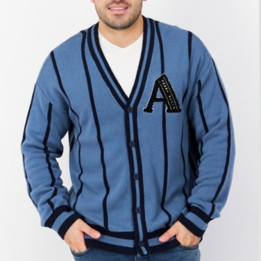 Men V Neck Knitted Embroidered Logo Cardigans