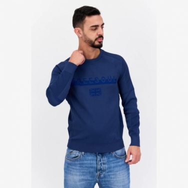 Jules Men Crew Neck Solid Long Sleeve Sweater, Navy