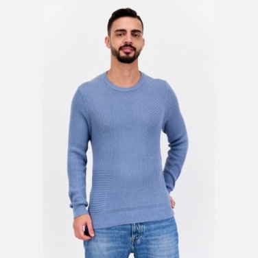 Celio* Men Crew Neck Long Sleeve Textured Sweatshirt, Blue