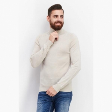 Celio Men High Neck Long Sleeve Plain Sweaters, Beige