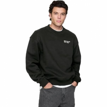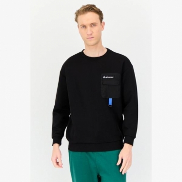 Celio* Men Crew Neck Plain Long Sleeve Sweatshirts, Black