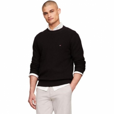 Tommy Hilfiger Mens Textured Waffle Knit Crewneck Sweater
